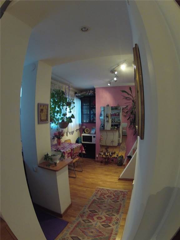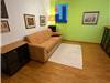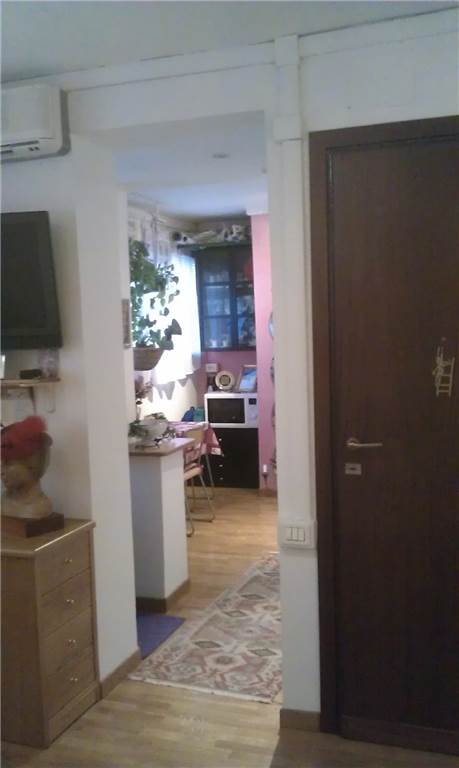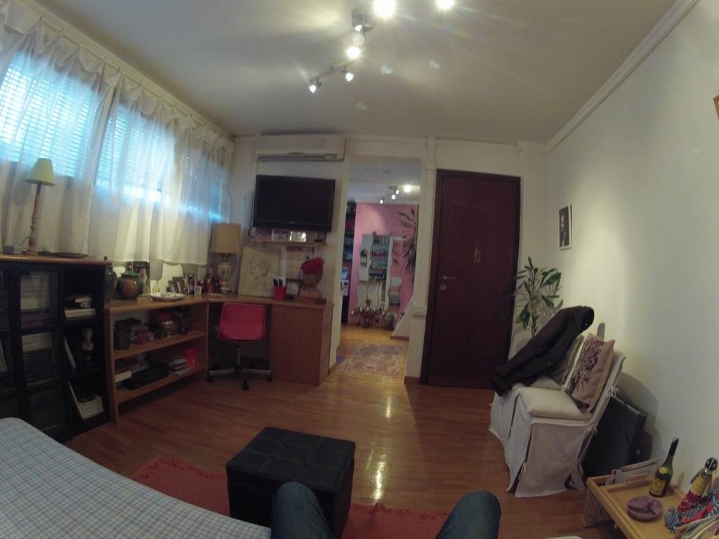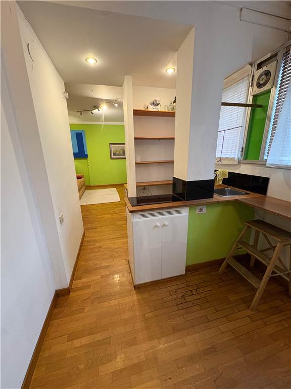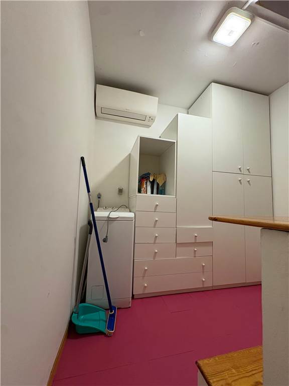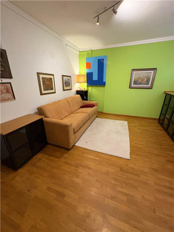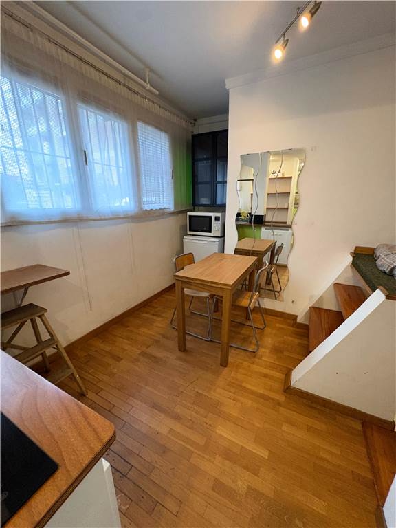 Via Vittore Carpaccio – Loft with independent access on the ground floor of an elegant building with a doorman. The property comprises: a living room that converts into a bedroom with a sofa, a study with a chest of drawers, display cases, and a bookcase, a fully equipped kitchenette, a dining area with a table, and a small mezzanine that can be used as a makeshift bed or additional study area.