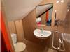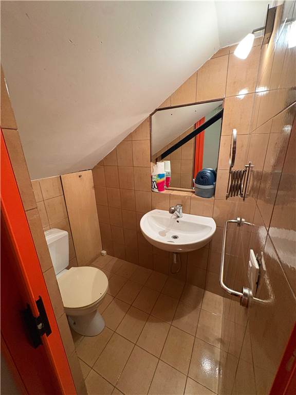 On the lower level, there is a bathroom with a dressing room, a washing machine, and a large work table. A few more steps down is a bathroom with a shower and a small storage closet under the stairs. Air conditioning is available on both levels.